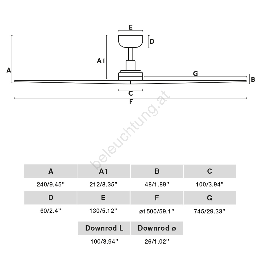 • Deckenventilator ohne Beleuchtung.