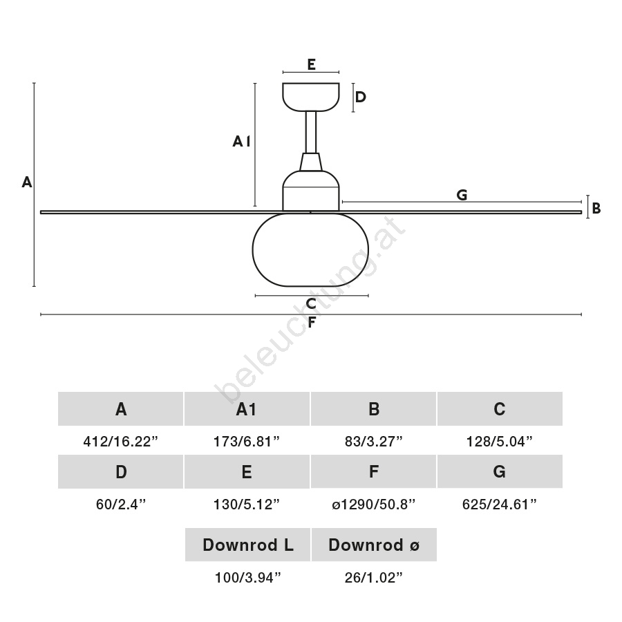 • Deckenventilator mit integrierter Beleuchtung.