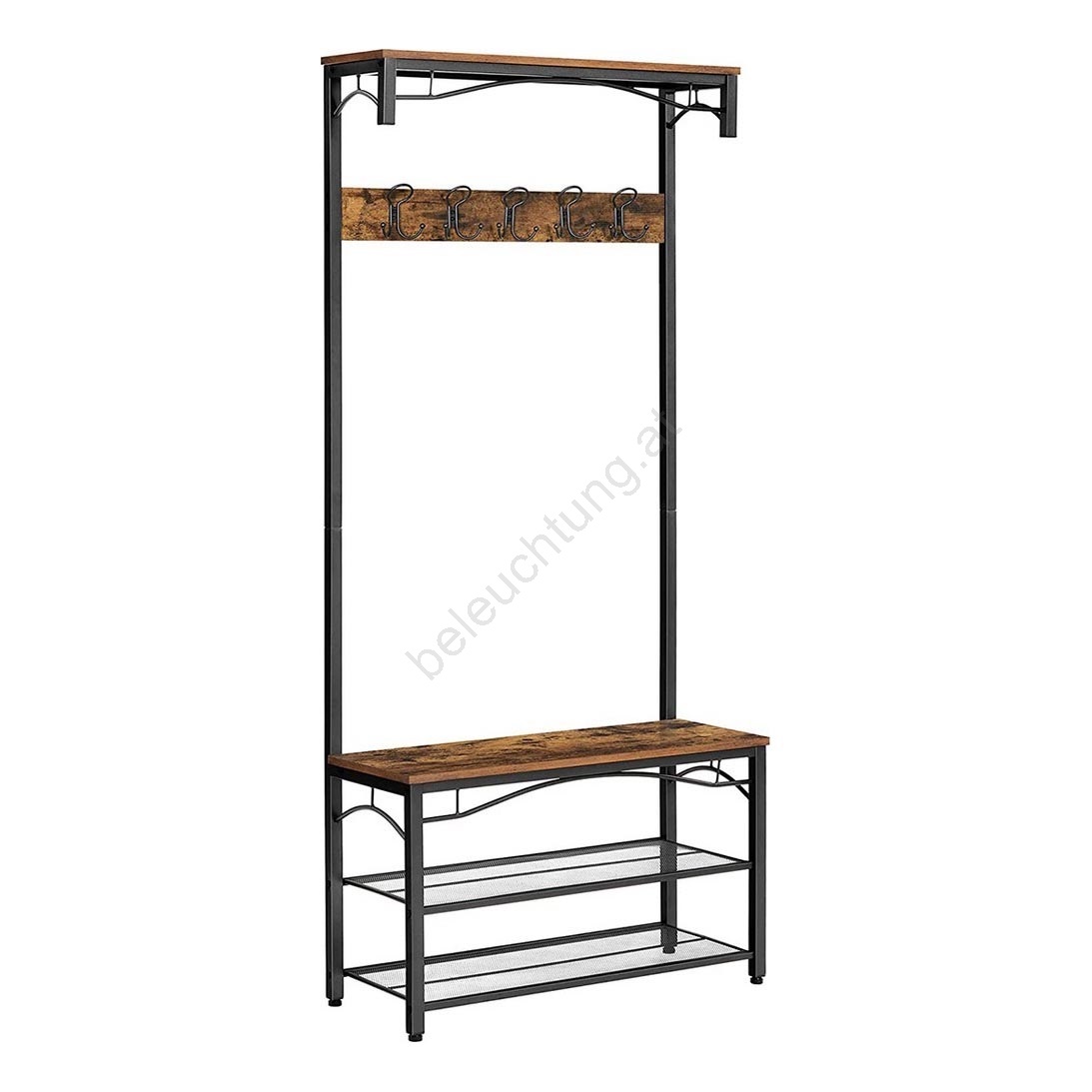 • Bringen Sie den Charme von Holz und die Robustheit von Metall in Ihr Zuhause mit diesem stilvollen Garderobenständer im Industrial-Design.