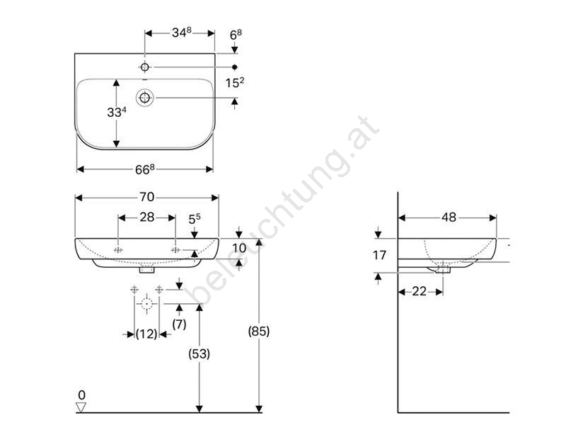• Es verfügt über eine mittige Armaturenbohrung und ist zur Wandmontage vorgesehen.