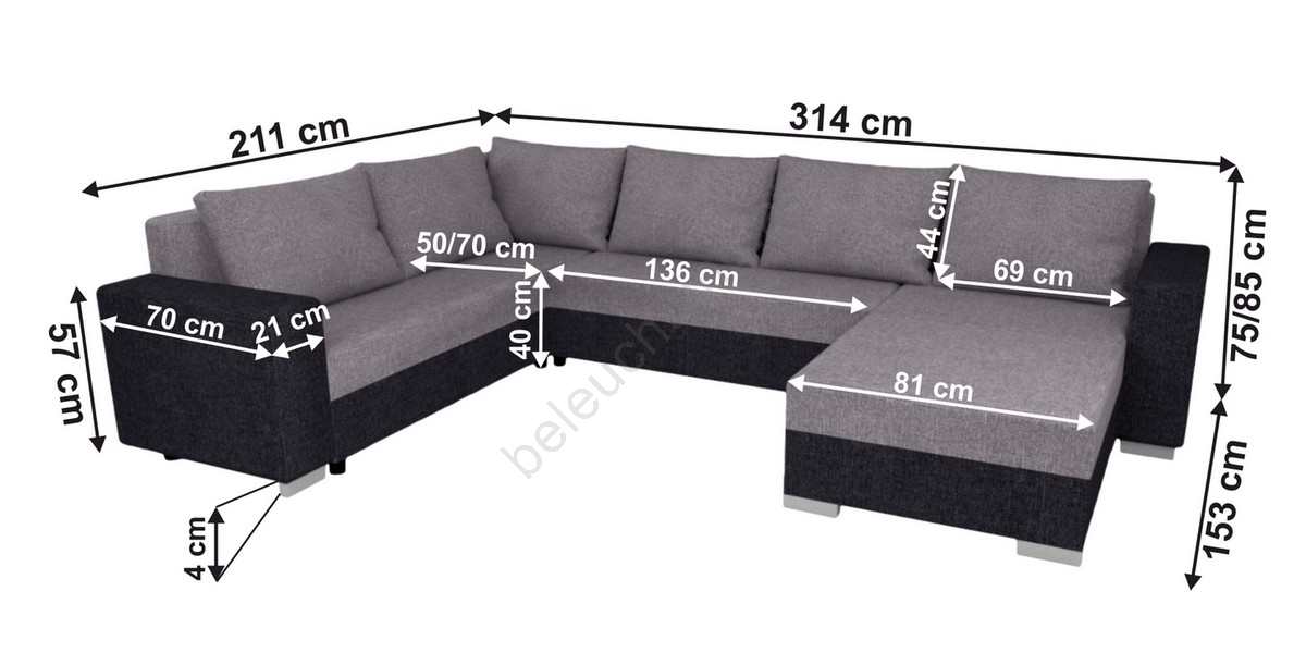 • Die Garnitur ist mit einer ausziehbaren Schlaffläche ausgestattet, die komfortablen Schlaf bietet, und außerdem mit praktischem Stauraum für Bettwäsche und weiteres Zubehör.