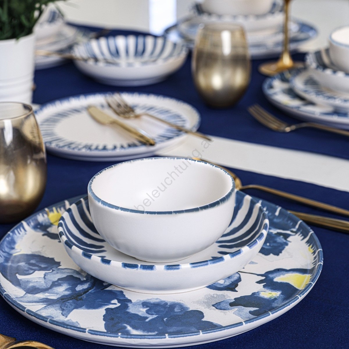 24-tlg. Geschirrset, weiß/blau, Steingut