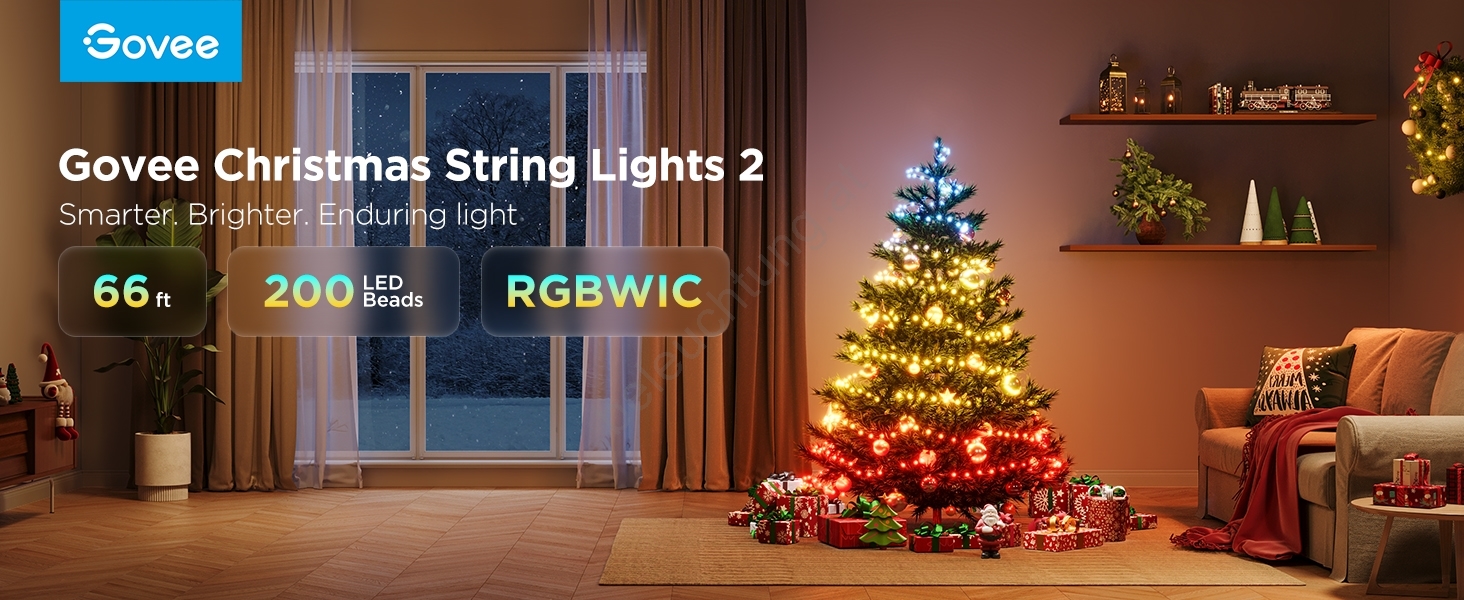 Govee - LED RGBICW Outdoor-Weihnachtslichterkette 2700-6500K 20m Wi-Fi Matter IP66
