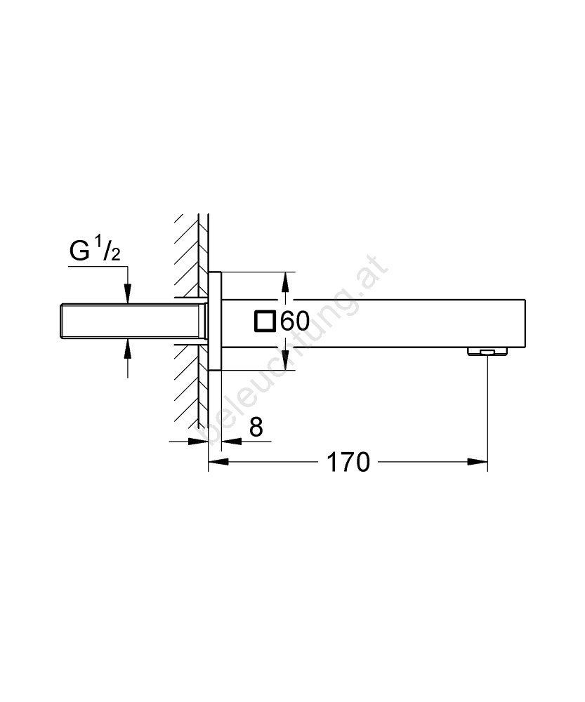 • Auslauflänge 170 mm für komfortables Befüllen der Badewanne.