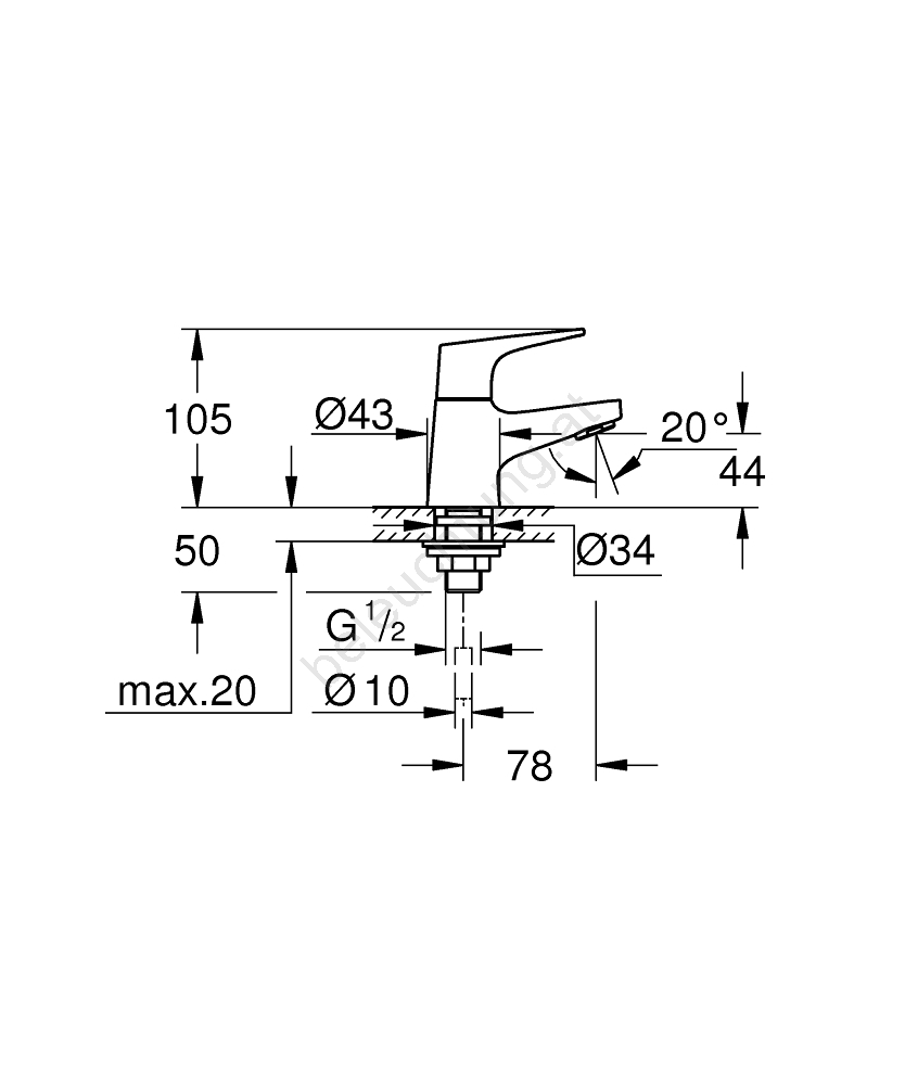 • Kompakter Waschtisch-Einhebelmischer, ideal für kleine Waschbecken.