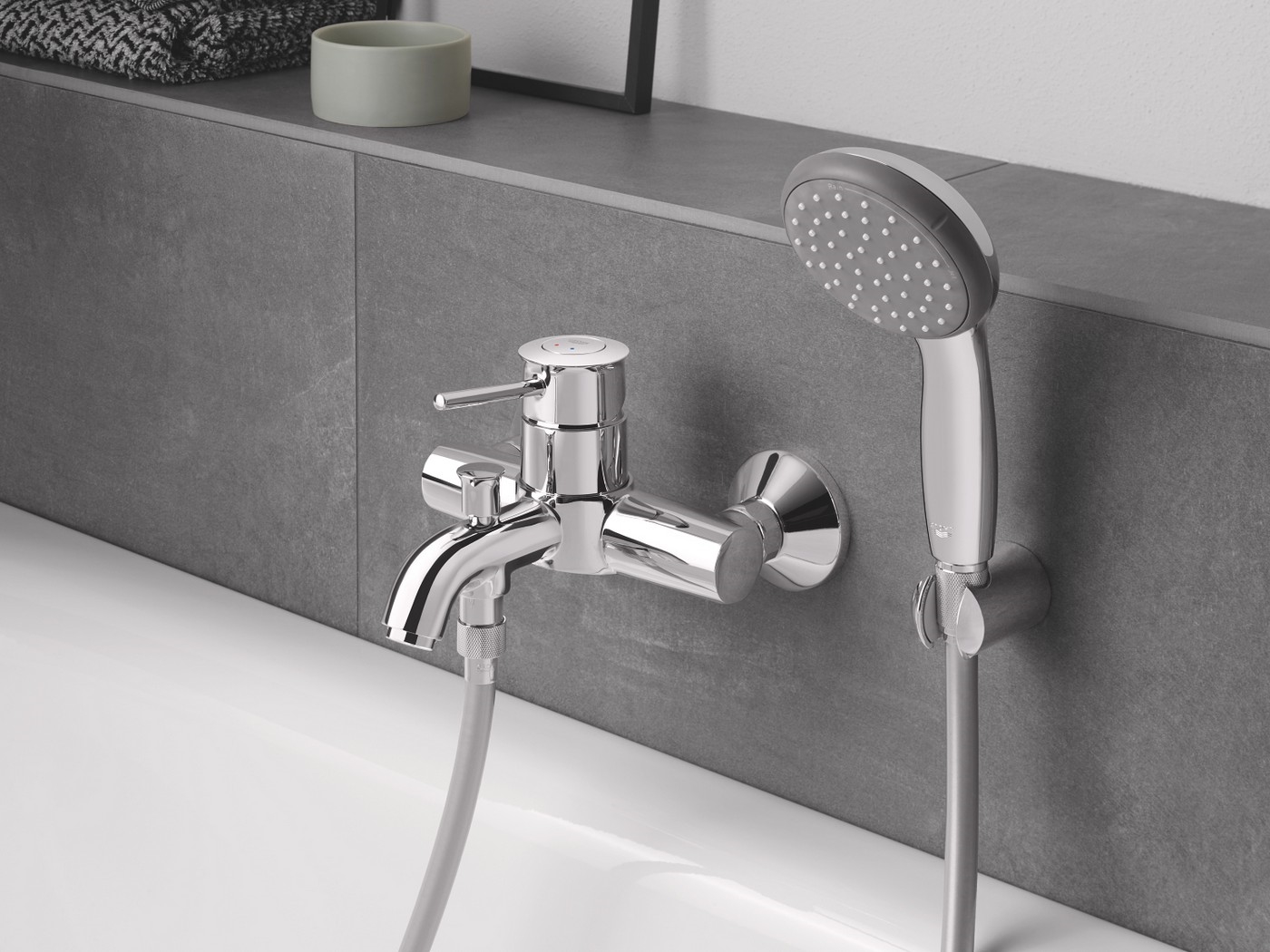 • Wandmontierte Einhebel-Badarmatur mit elegantem Chromfinish GROHE StarLight.