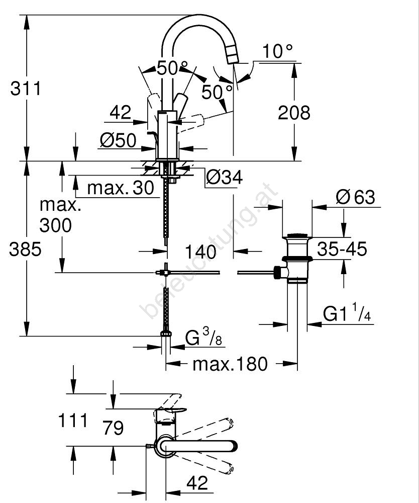 • Höhe der Armatur: 311 mm, ideal für die Montage unter dem Fenster.
