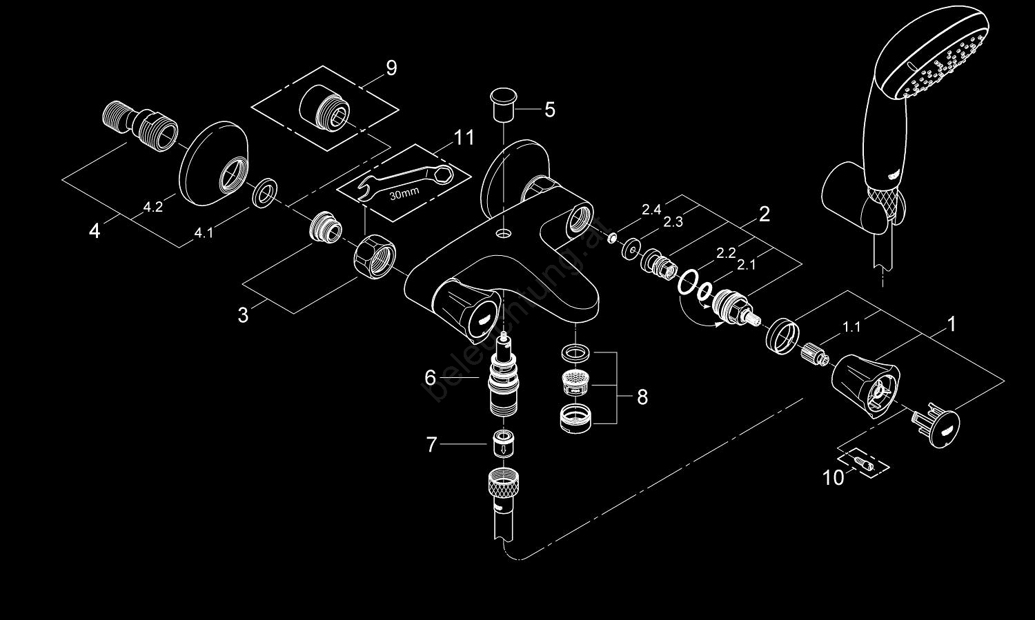 • Wandhalterung für die Brause für eine bequeme Platzierung.