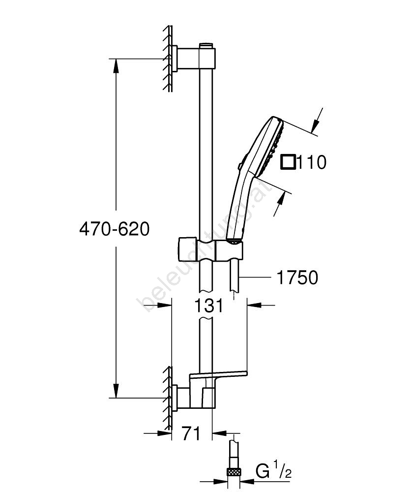• Brausestange Vitalio Universal, 600 mm lang, mit verstellbarer oberer Halterung für eine einfache Montage in vorhandene Bohrungen.