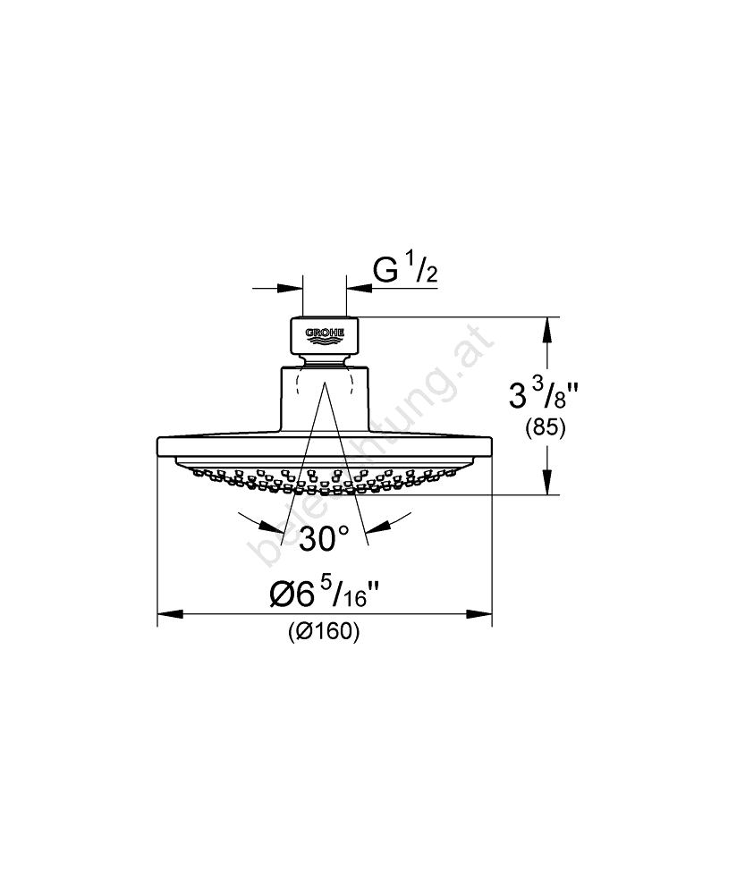 • Kopfbrause mit 160 mm Durchmesser für großflächige Abdeckung.