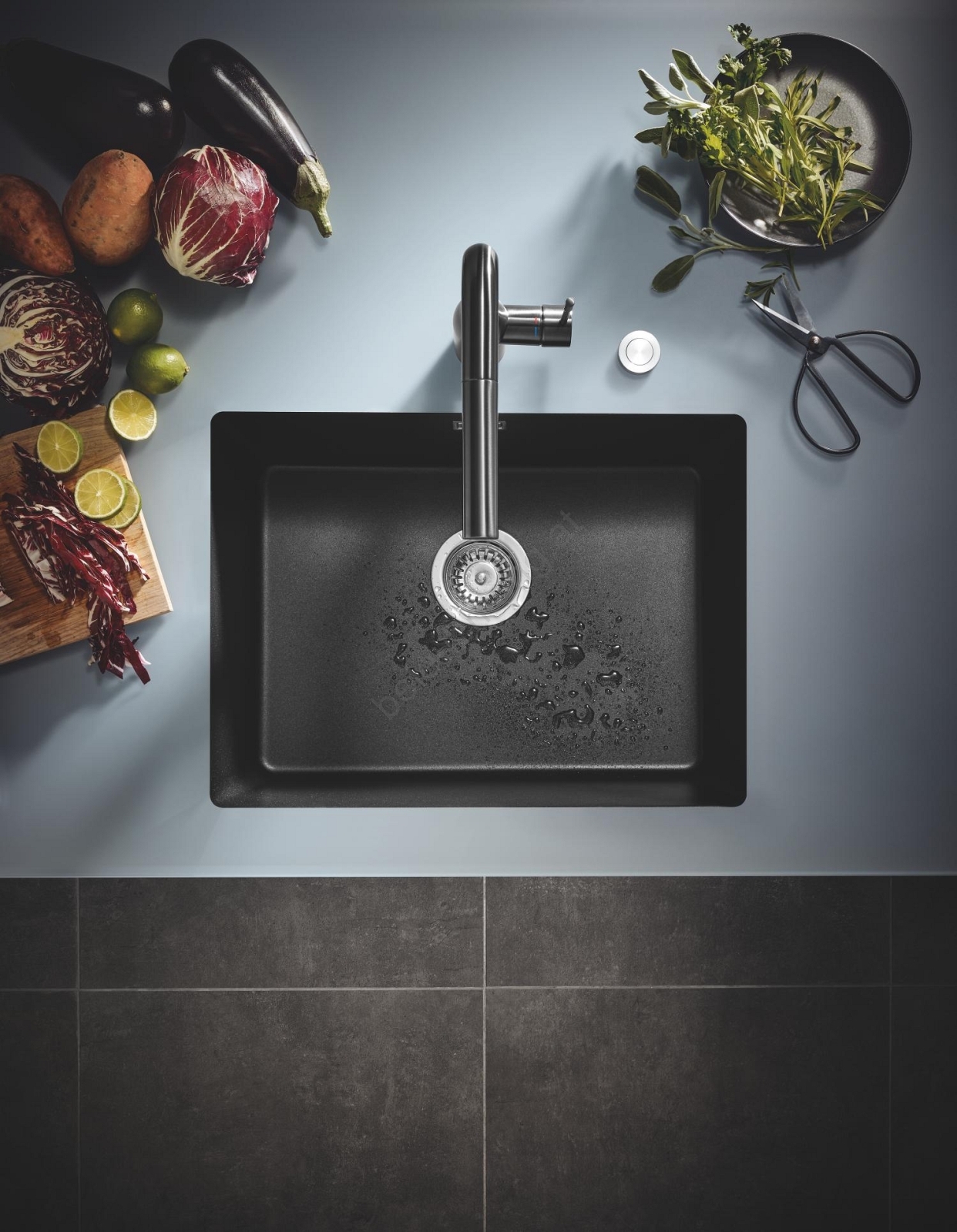 • Quarzkomposit-Spüle GROHE K700U, wahlweise für Auflage- oder Unterbaumontage.