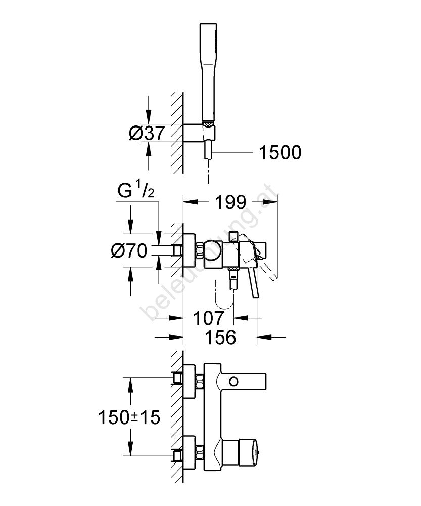 • Einhebel-Wannenarmatur zur Wandmontage mit eleganter Chromoberfläche GROHE StarLight für langanhaltenden Glanz.