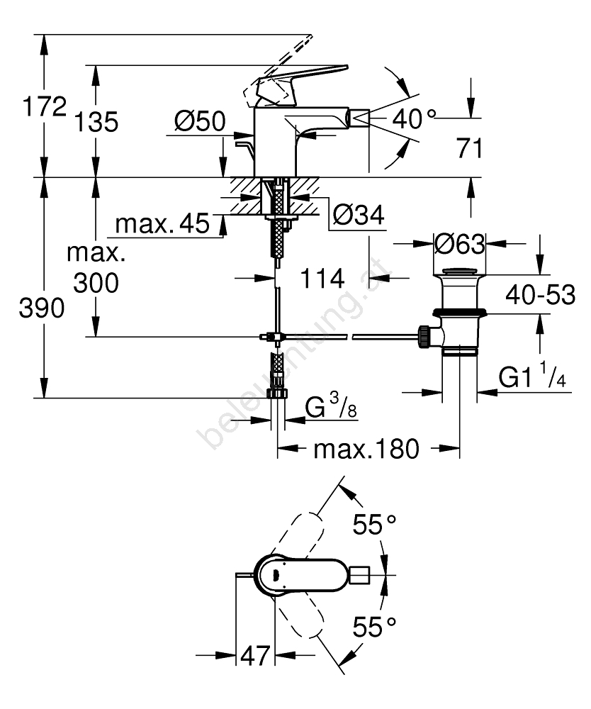 • Schnellbefestigungssystem GROHE FastFixation mit Zentriervorrichtung für schnelle und präzise Montage.