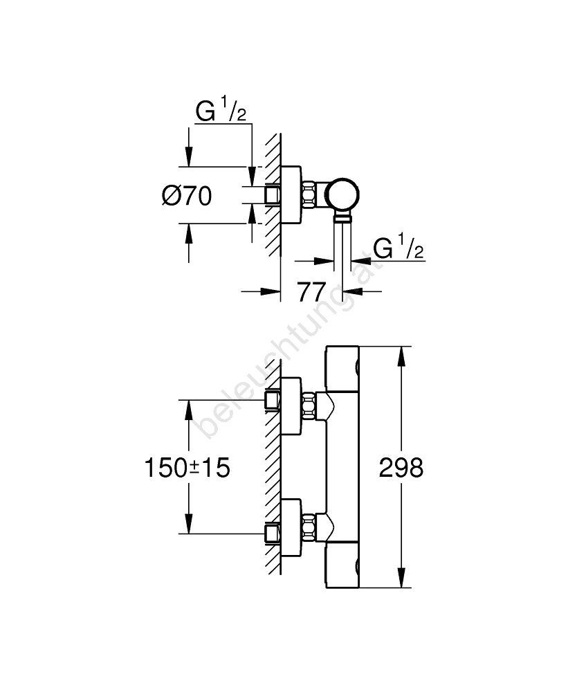 • Thermostat-Duscharmatur zur Wandmontage.