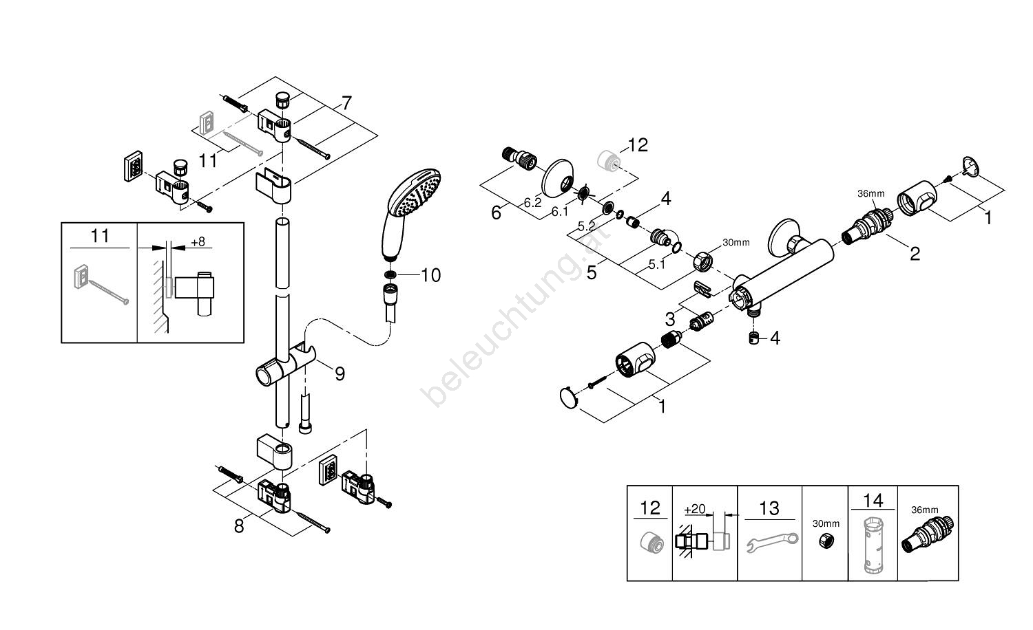 • Montagemöglichkeit durch Verschraubung (Schrauben und Dübel im Lieferumfang) oder Klebung (Kleber GROHE QuickGlue S 41 247 000 wird separat verkauft; 2 Stück werden benötigt).