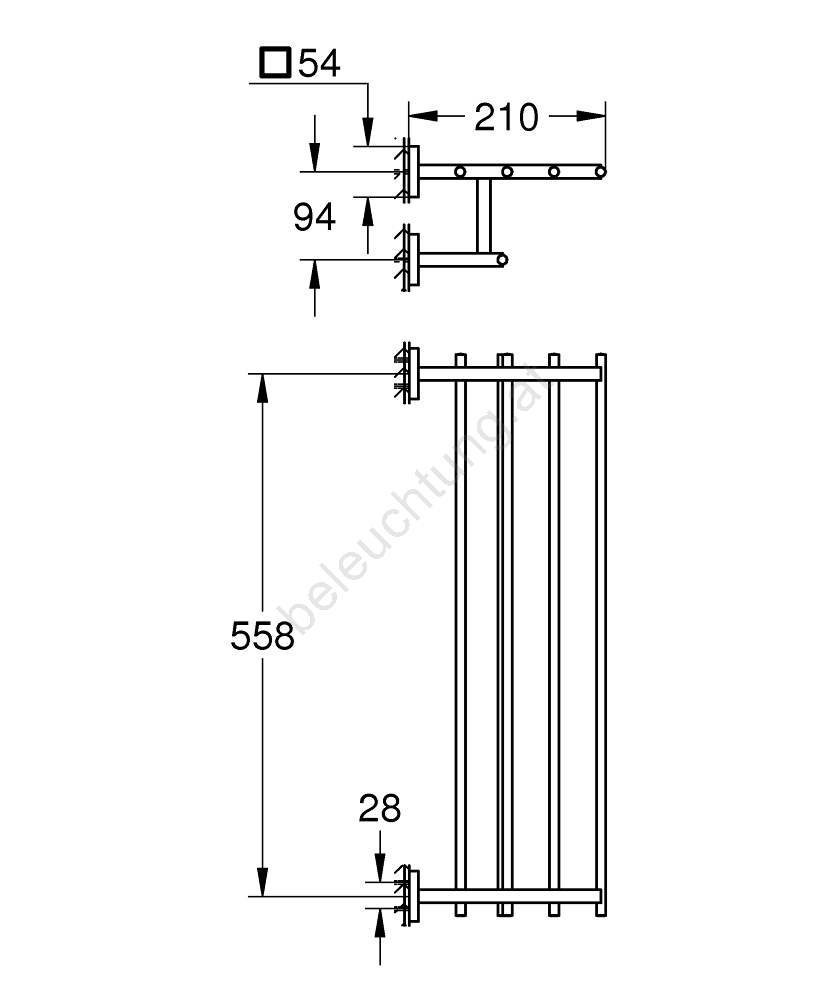 • Länge 600 mm mit Bohrabstand 558 mm für einfache Installation.