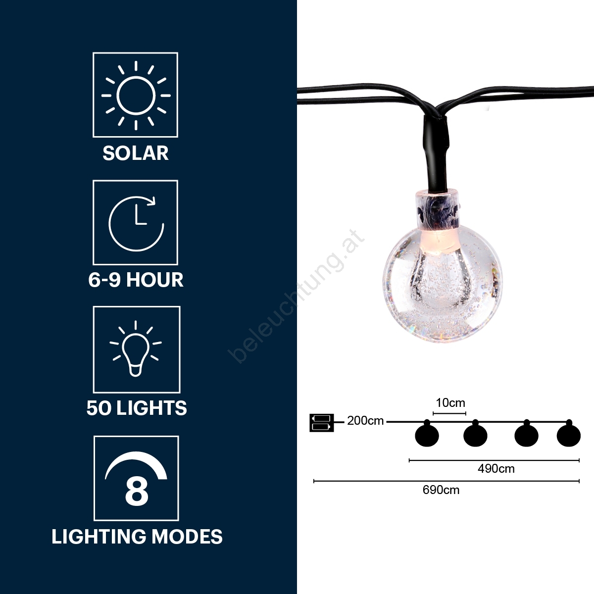 Grundig - LED Solar-Lichterkette 50xLED/8 Funktionen 6,9 m warmweiß 600 mAh