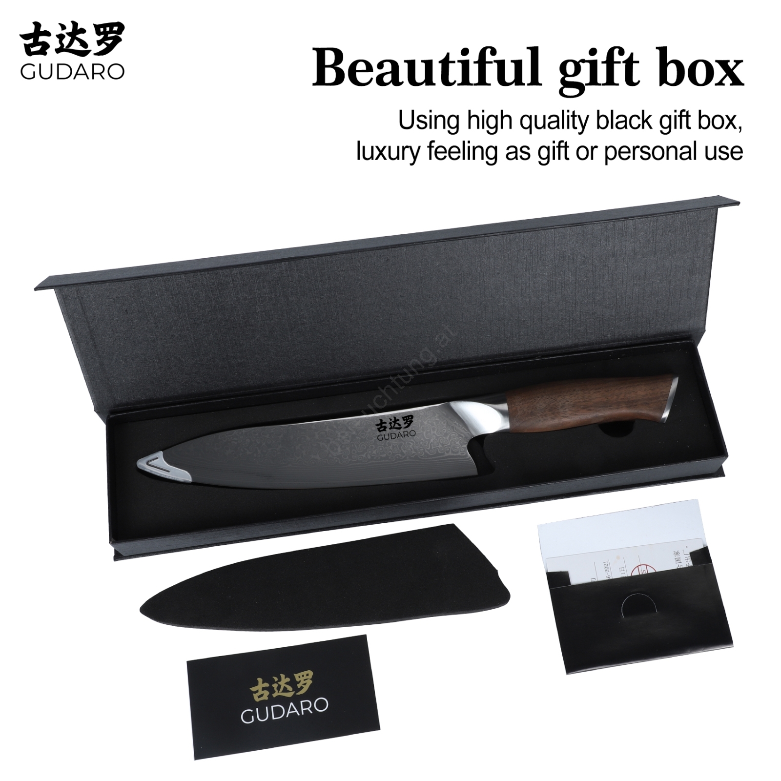 Gudaro - Damast-Chefmesser TAKUMI 8", 67-lagiger Damaststahl, Klingenlänge 20 cm, Walnussgriff