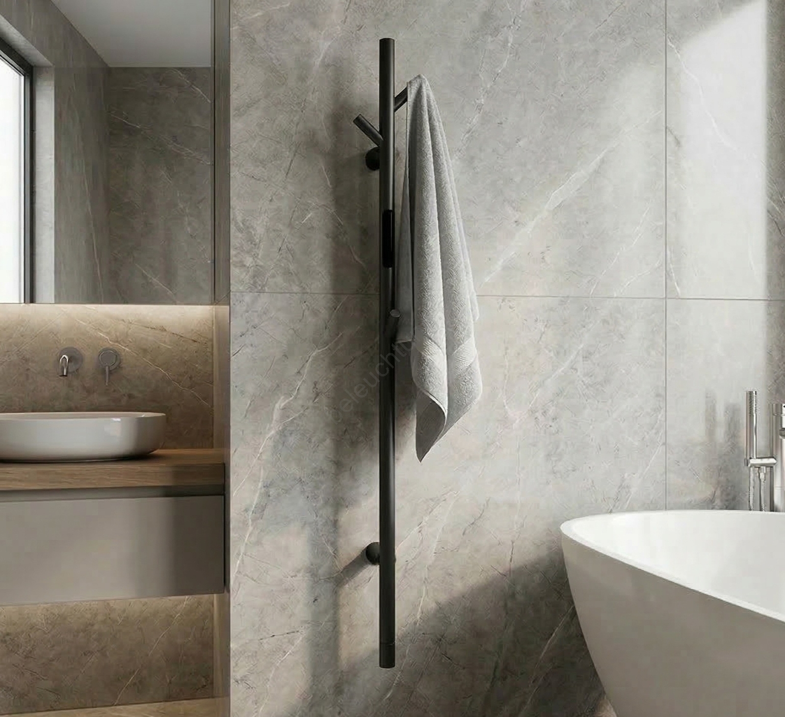 • Elektrischer Handtuchwärmer mit elegantem schwarzen Finish.