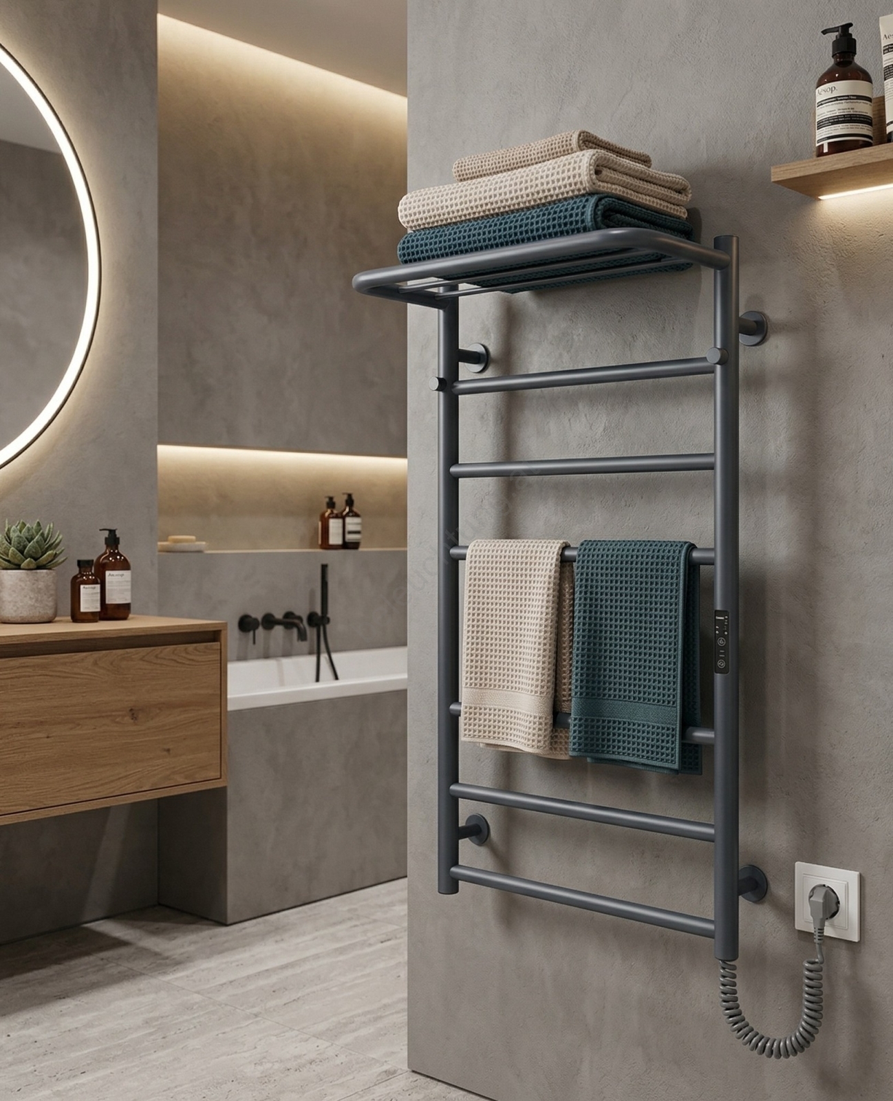 Handtuchheizkörper HOME 95W/230V 77x53 cm, Edelstahl/Anthrazit, rechts