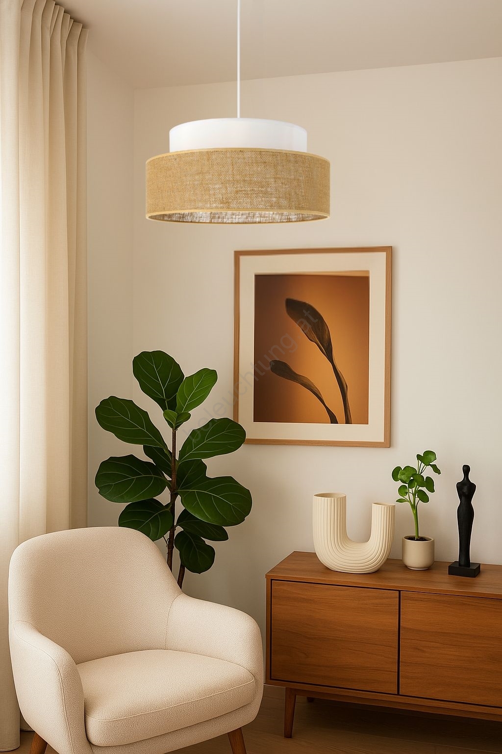 • Hängeleuchte BOHO an Kabel, 1x E27/60W/230V, Ø 40 cm, creme/Jute