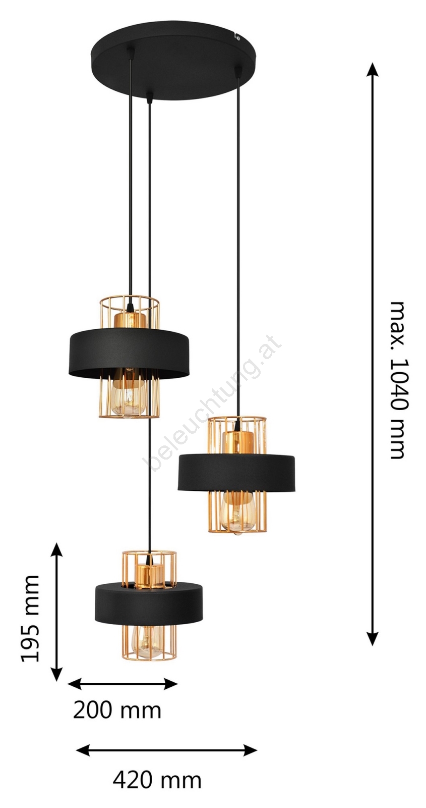• Hängeleuchte VOLTA 3xE27/15W/230V schwarz/gold