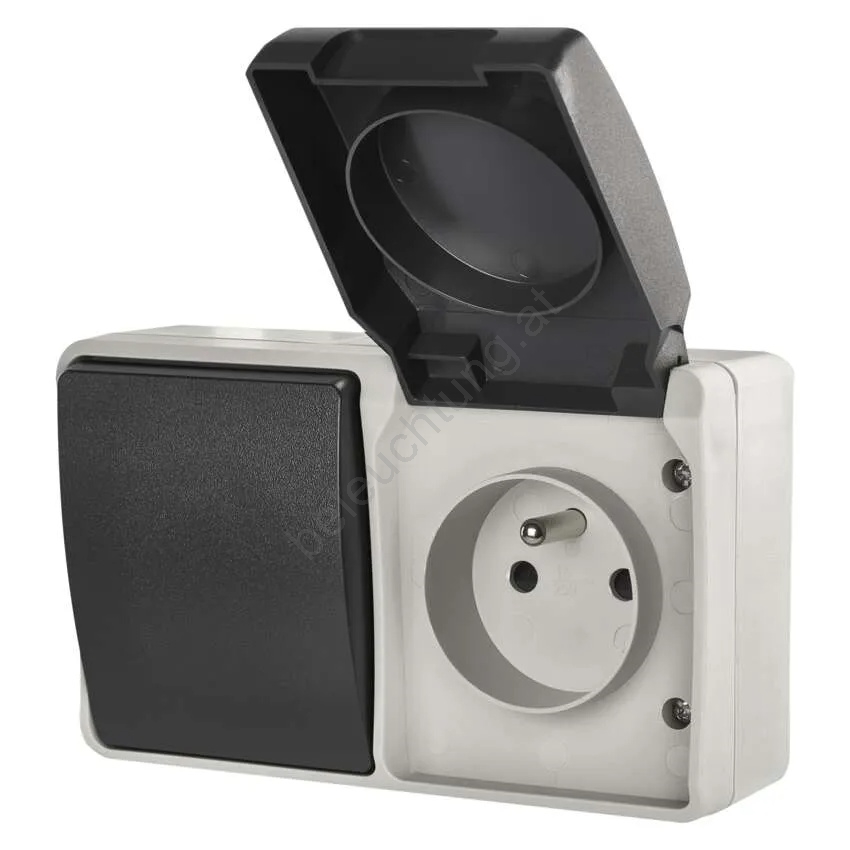 Wechselschalter Nr. 6 mit Steckdose 250V/16A IP44 grau