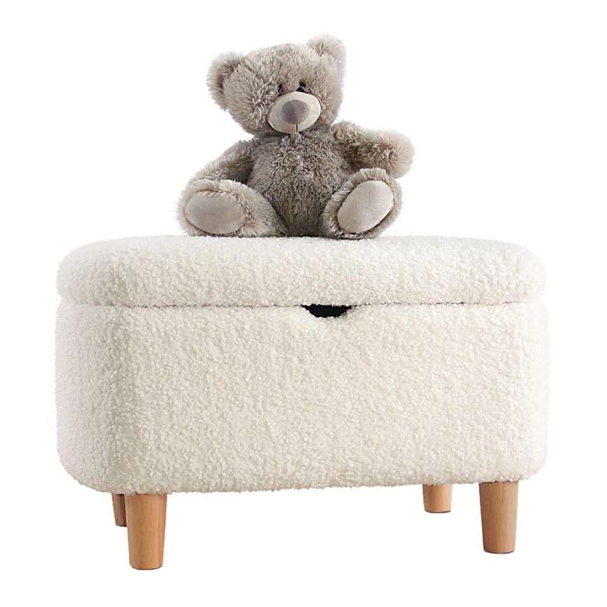 • Im Inneren des Hockers befindet sich Stauraum zum Verstauen von Kleidung, Spielzeug, Decken und anderen Gegenständen.