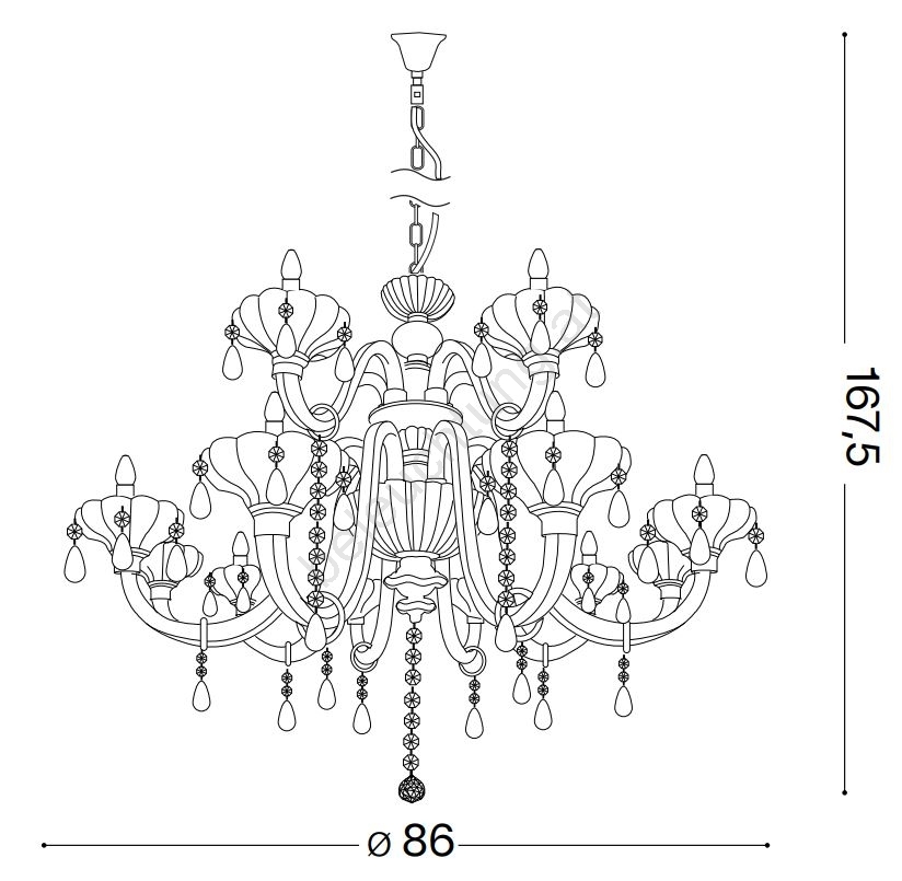 Ideal Lux - Kristall-Kronleuchter an Kette CONTINENTAL 12xE14/40W/230V d 86 cm klar