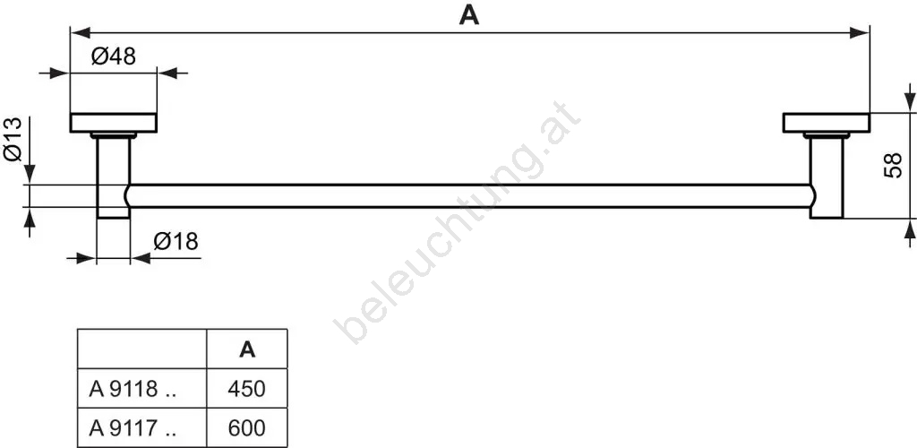 • Mit einer Länge von 600 mm bietet er ausreichend Platz für das komfortable Aufhängen von Handtüchern.