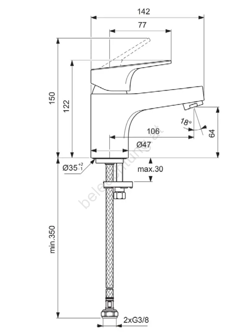• Die Armatur ist für den Standardanschluss G 3/8" vorbereitet.