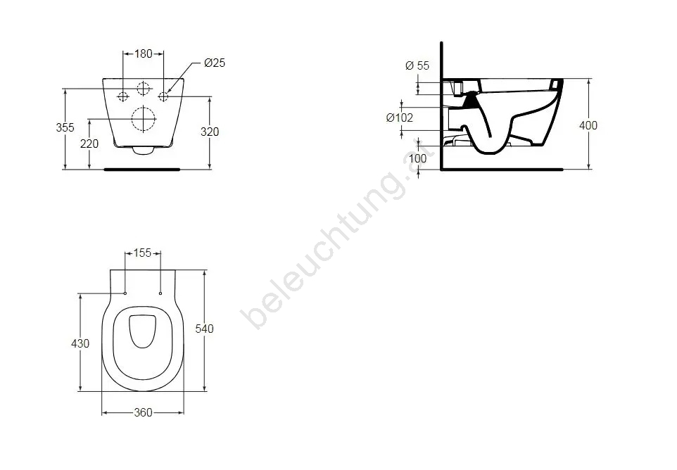 • Die Abmessungen 360 x 540 x 340 mm ermöglichen eine praktische Montage in kleinen und großen Badezimmern.