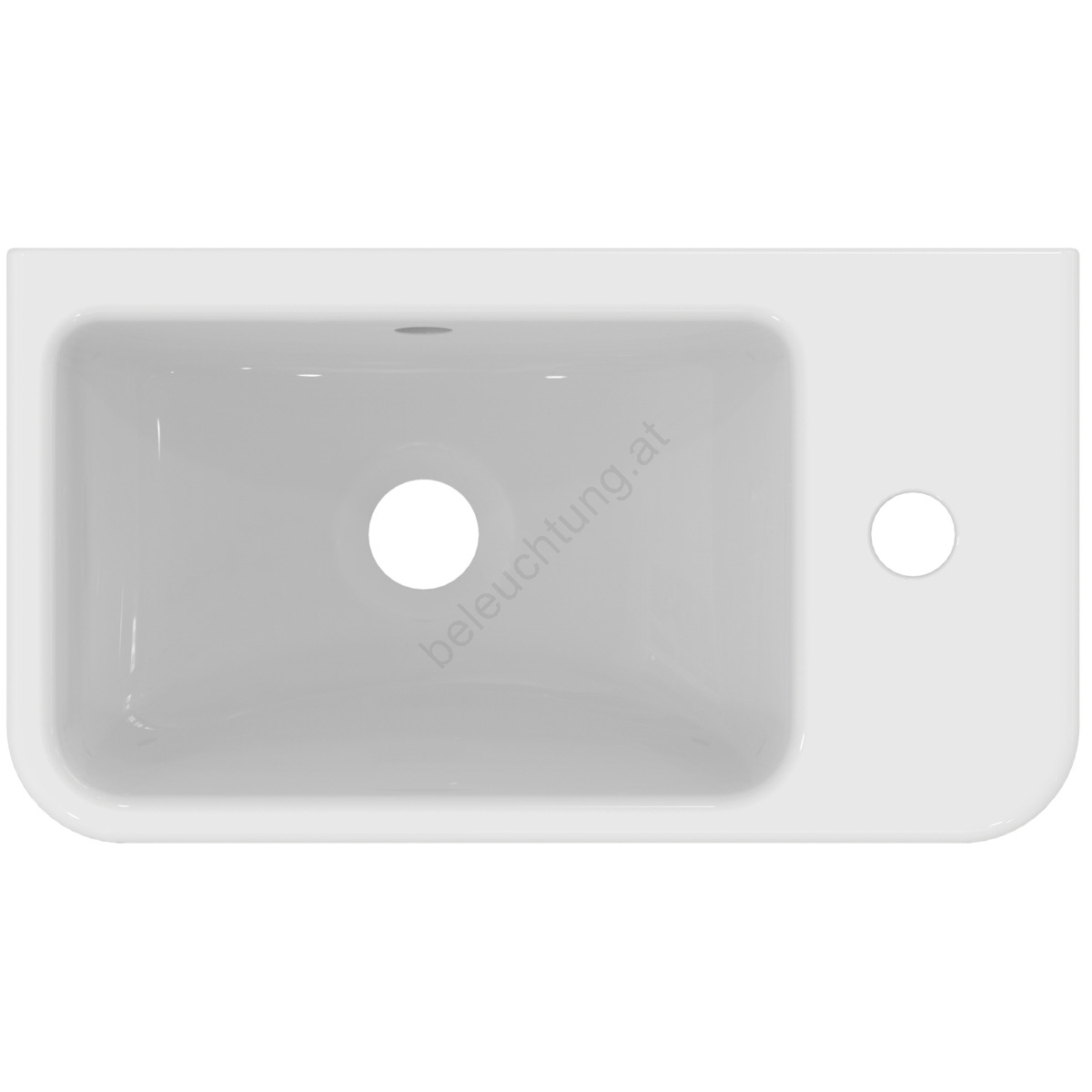• Das Waschbecken verfügt über eine Öffnung für die Armaturmontage auf der rechten Seite.