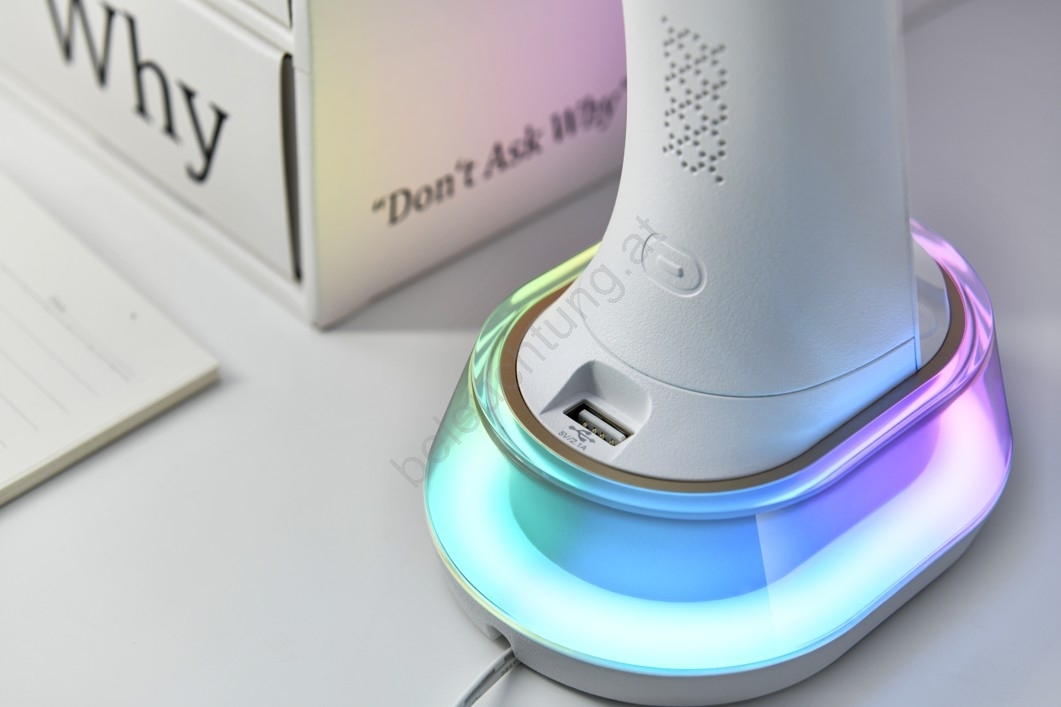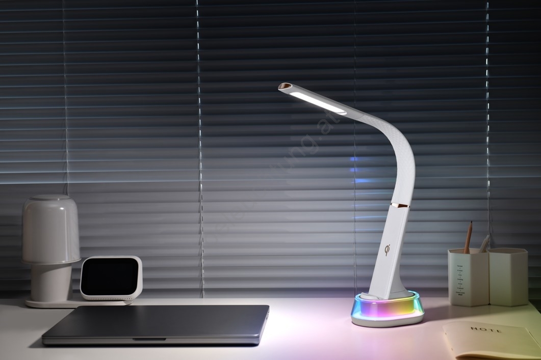 • Drahtloses Qi-Ladegerät ist im Lampengehäuse integriert.