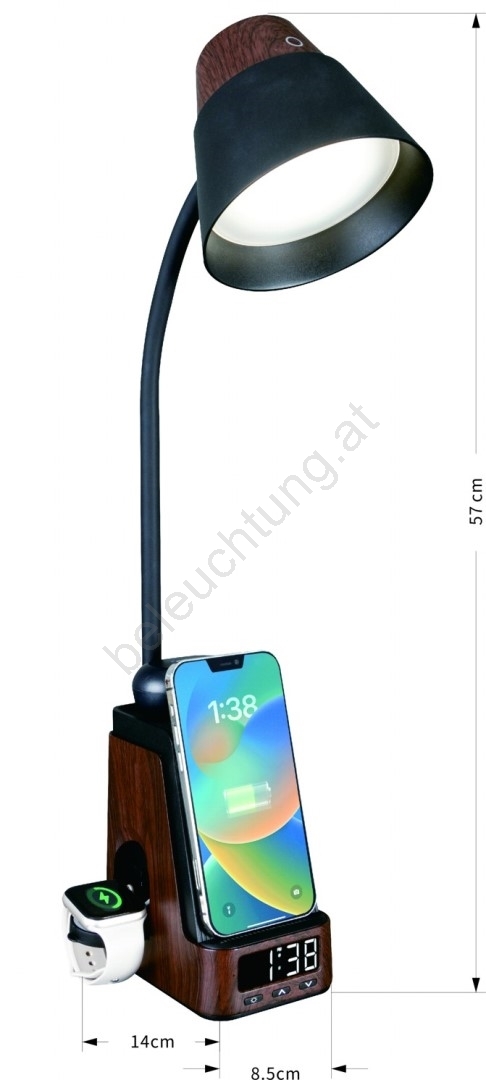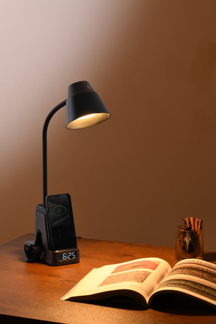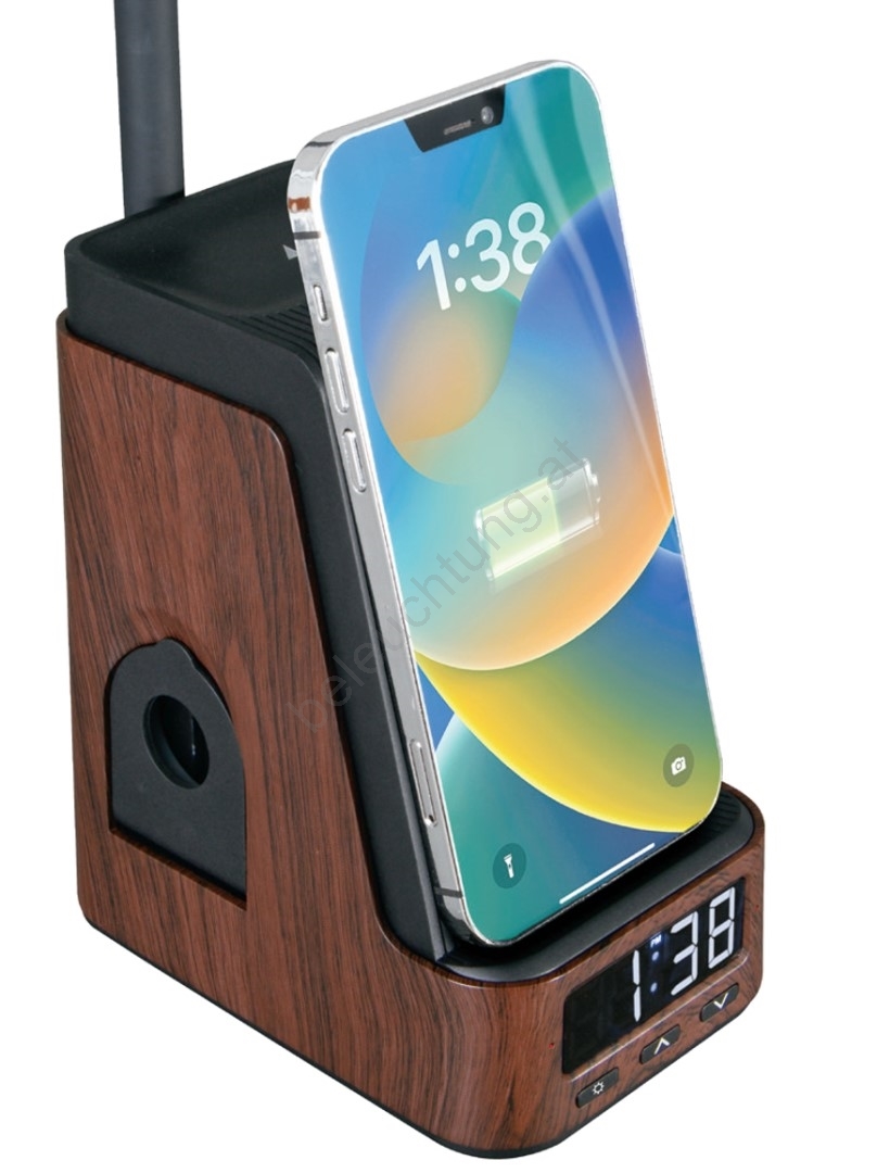 LED+CCT dimmbare Tischlampe mit kabellosem QI-Ladepad IDEAL LED/8W/230V 2700/4000/5000K braun
