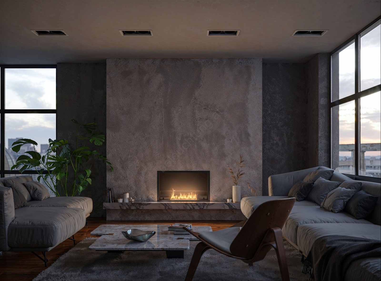 • Ein einfacher moderner Bio-Kamin, der in eine vorbereitete Nische eingesetzt werden kann.