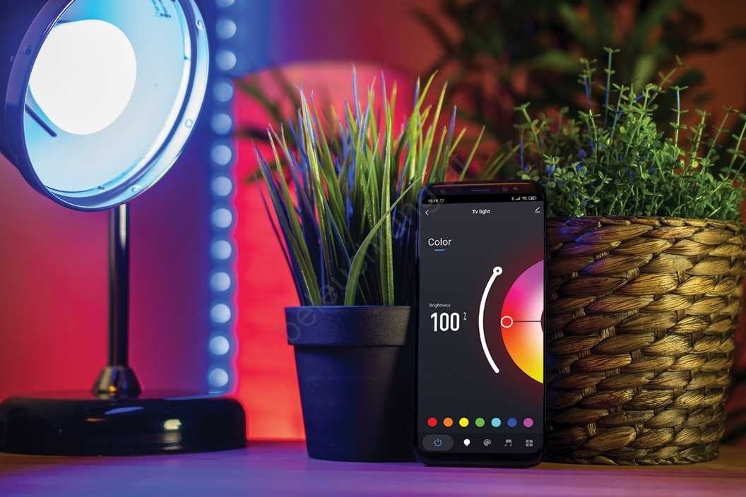 • Stufenloses Dimmen der Helligkeit (10 - 100%) und Wechsel der Lichtfarbe (RGB).