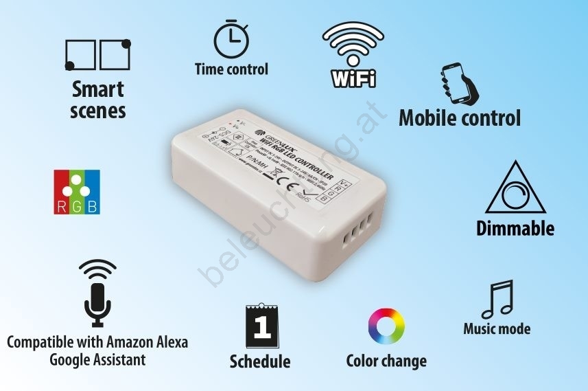 • Dank des Controllers kann der LED-Streifen mit einem Smartphone, Tablet, etc. gesteuert werden.