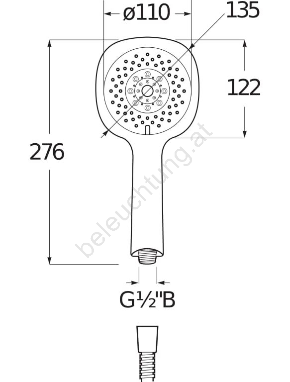 • Handbrause mit den Maßen 13 x 13 cm.