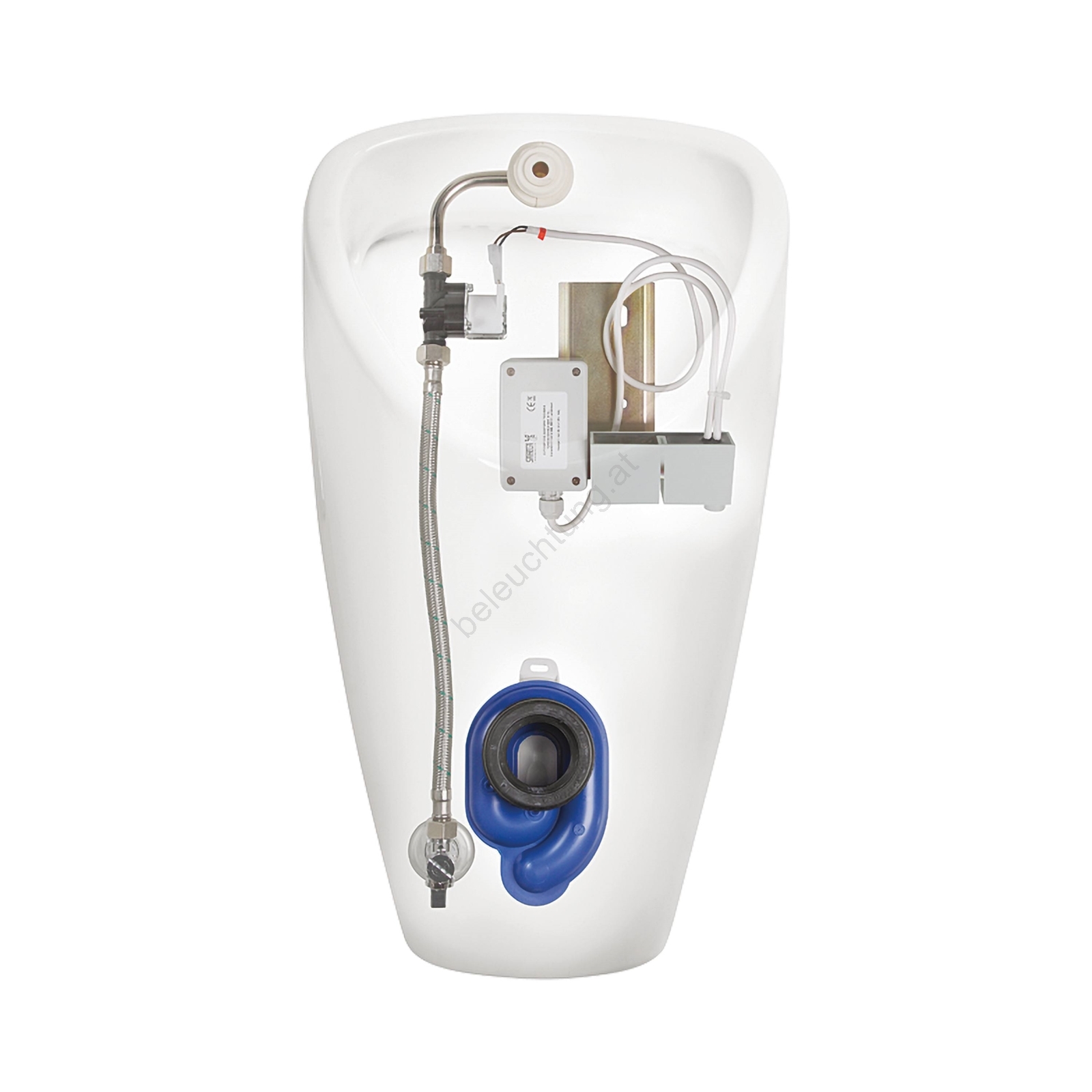 • Das Produkt enthält Radarelektronik auf Montageleiste, Magnetventil, Verbindungsschläuche, Eckventil mit Filter und Rückschlagklappe, Zulaufarmatur mit Dichtung, Siphon (0,5-4 l), Befestigungsset, Montagevorlage, Netzteil.