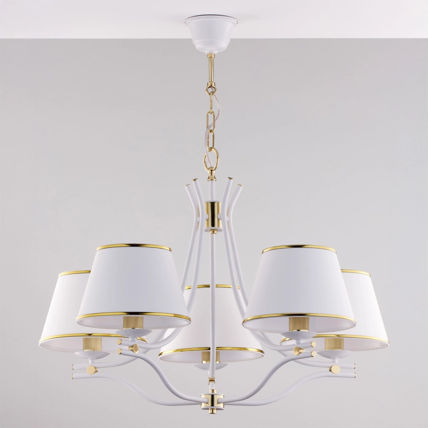 Jupiter 2084 - Kronleuchter an Kette SAMBA 5xE27/15W/230V weiß/gold