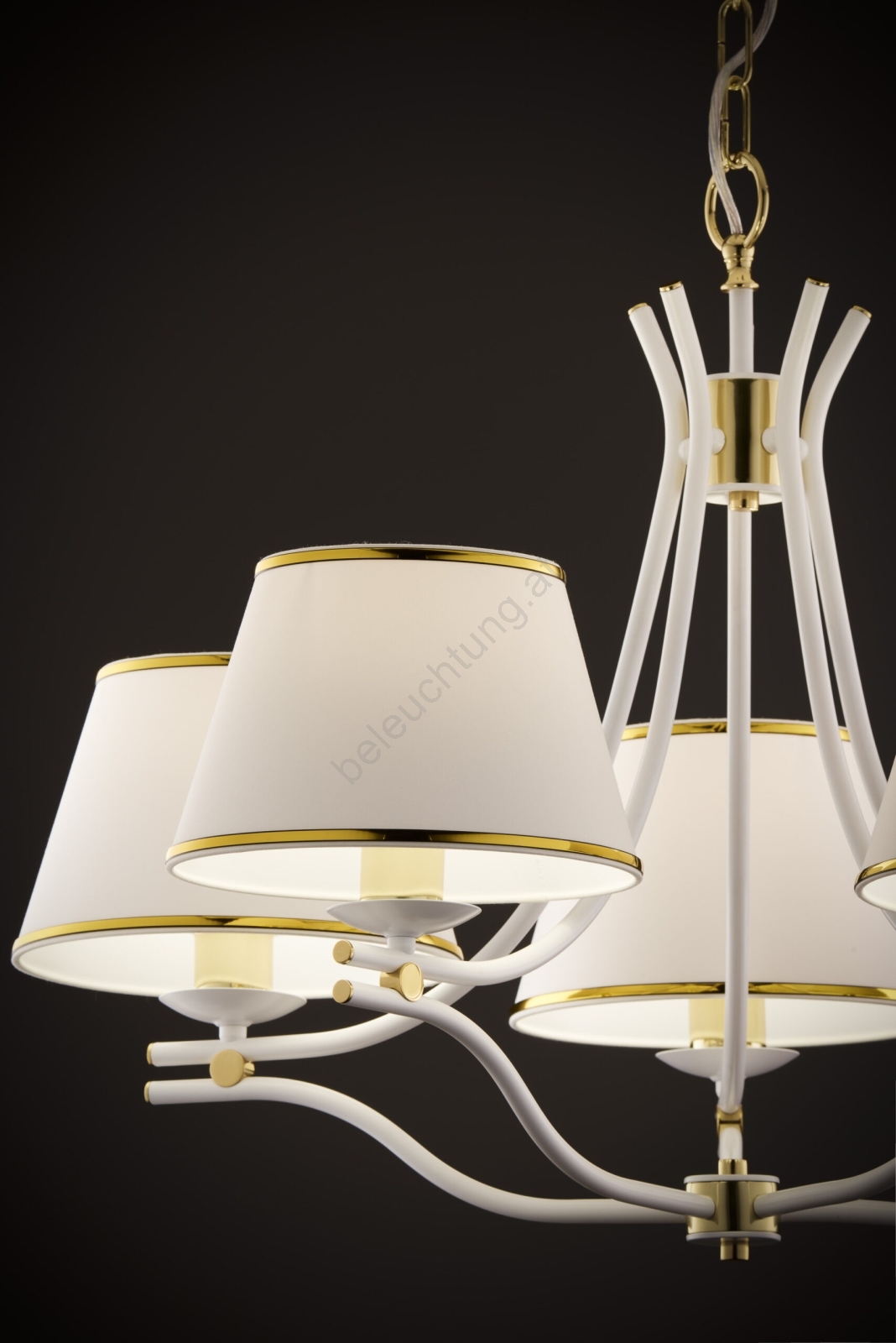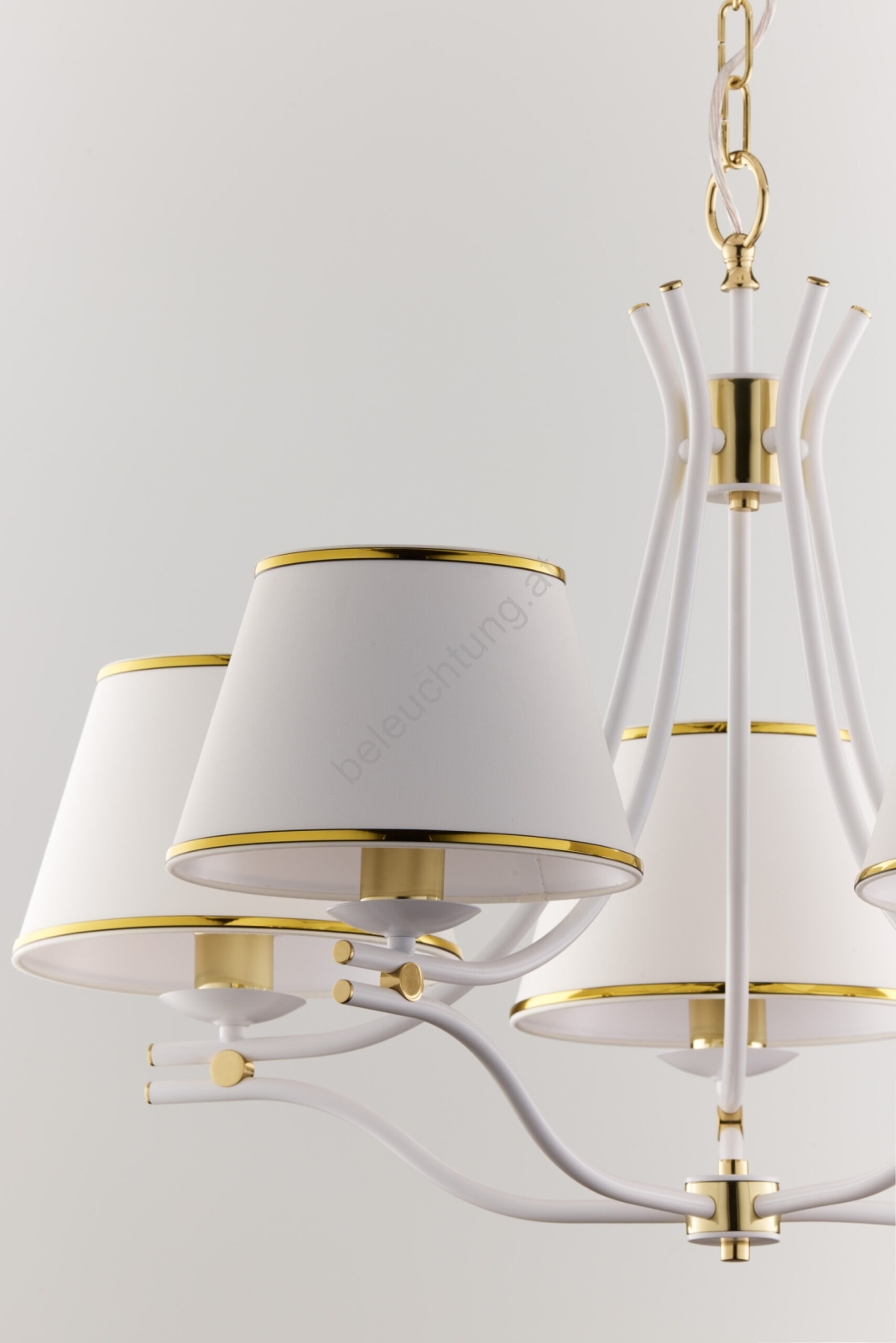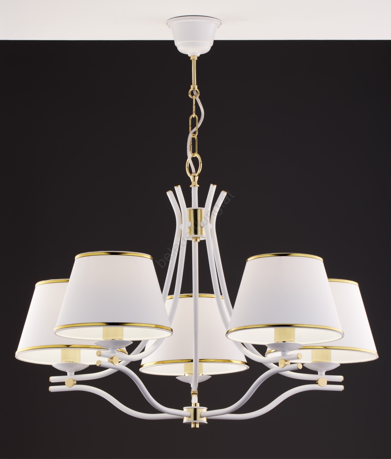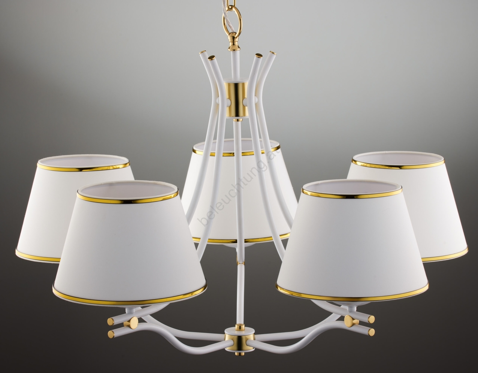Jupiter 2084 - Kronleuchter an Kette SAMBA 5xE27/15W/230V weiß/gold zeichnet sich durch schönes und funktionales Design aus. Eine Glühbirne mit E27 Sockel ist für die Leuchte geeignet. Hier, können Sie andere Glühlampen zu vorteilhaften Preisen kaufen. Sie erhalten eine attraktive Ergänzung für Ihr Zuhause.