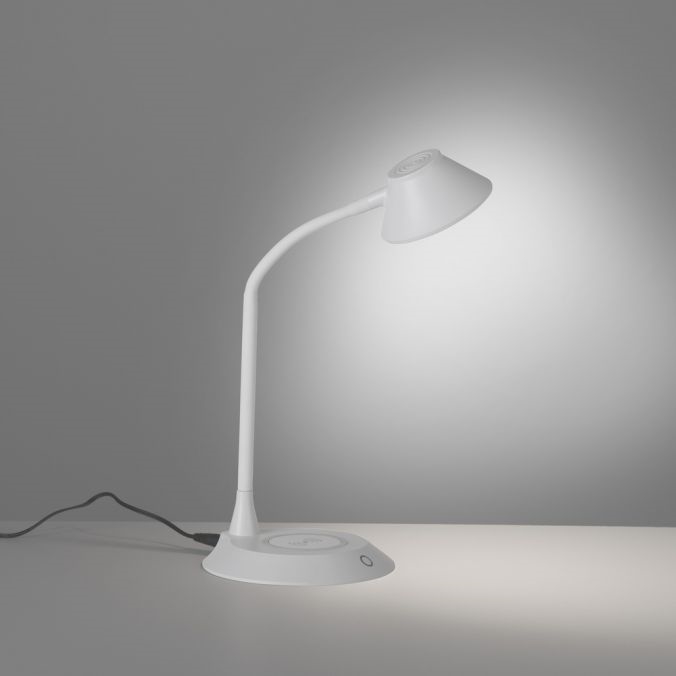 JUST LIGHT. 14414-16 - LED-dimmbare, flexible Tischlampe mit Touch-Bedienung und kabelloser Ladefunktion PUCKI LED/4,5W/230V weiß