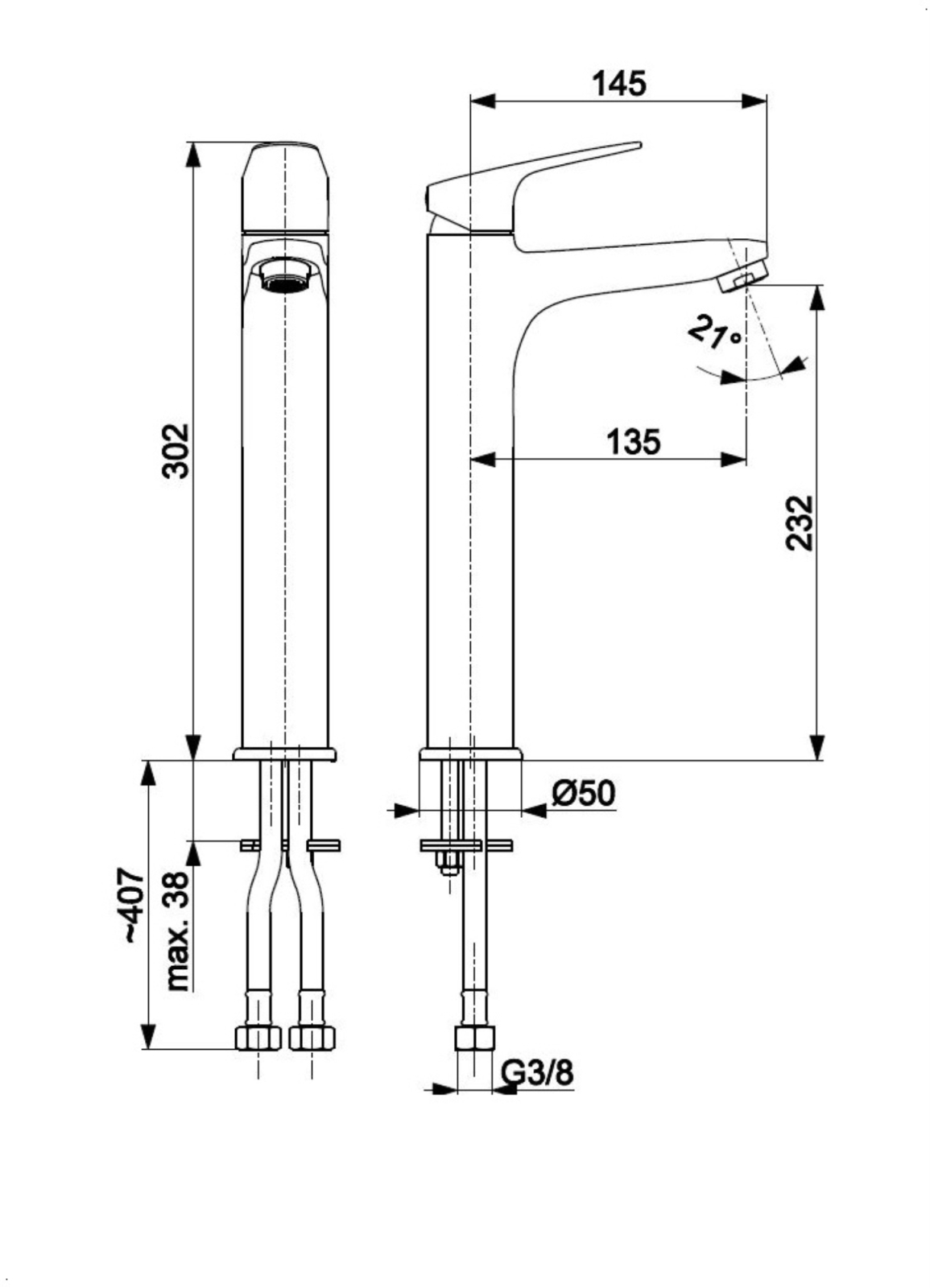 • Lieferumfang: kleiner Click-Clack-Ablauf mit Überlauf, Montageset mit Dichtung, flexible Schläuche M10x1/G3/8" (L=700 mm, 2 Stück).