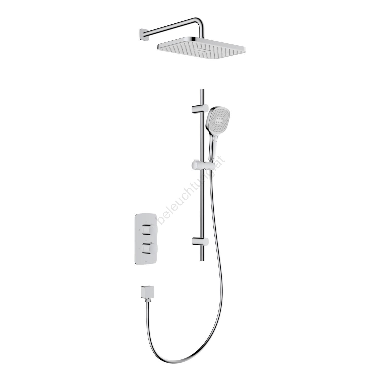 • Lieferumfang: Unterputzbox, komplette Armatur, Brausearm, Duschkopf mit Schlauch, verdeckte, verschiebbare Handbrause.