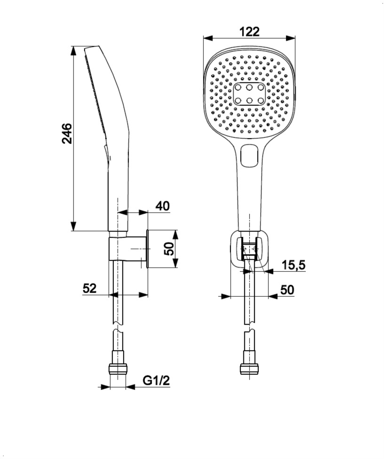 • Lieferumfang: verstellbare Wandhalterung, Montageset, Handbrause, PVC-Schlauch (L=1500 mm).