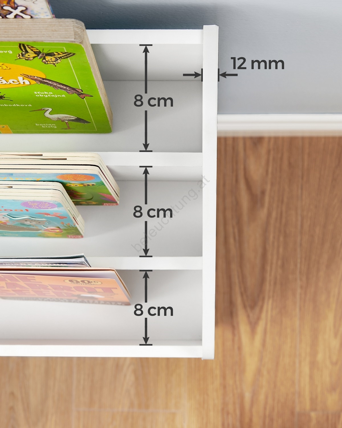 • Er verfügt über 3 geräumige Fächer für Bücher und eine große Schublade für eine einfache Aufbewahrung von Spielzeug und Büchern.