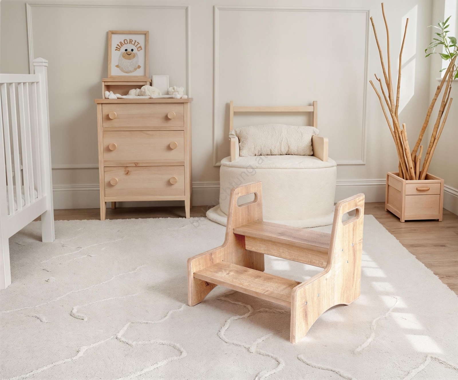 • Der Kindertritt aus Spanplatte ist die ideale Lösung für die täglichen selbstständigen Aktivitäten Ihrer Kinder