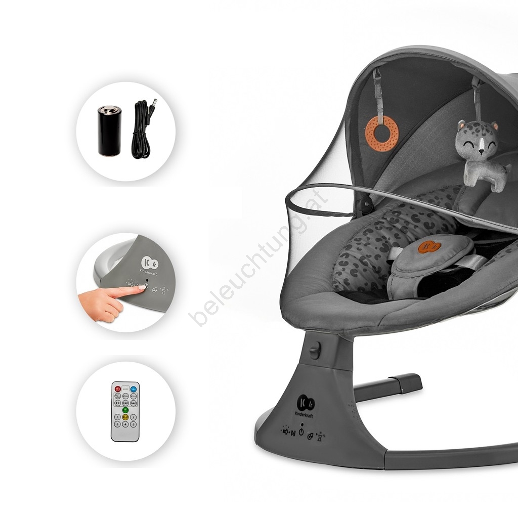 KINDERKRAFT - Babywippe mit Melodie 2in1 LUMI 4xAAA dunkelgrau