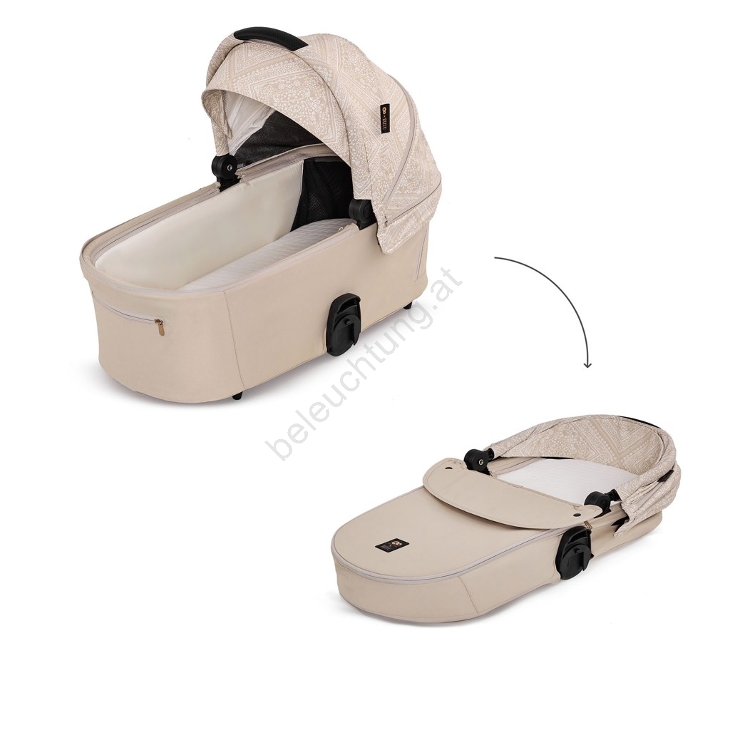 • Geräumige Babywanne mit weicher Matratze, Verdeck mit Belüftungsöffnung und Sichtfenster zur Kontrolle des Kindes.